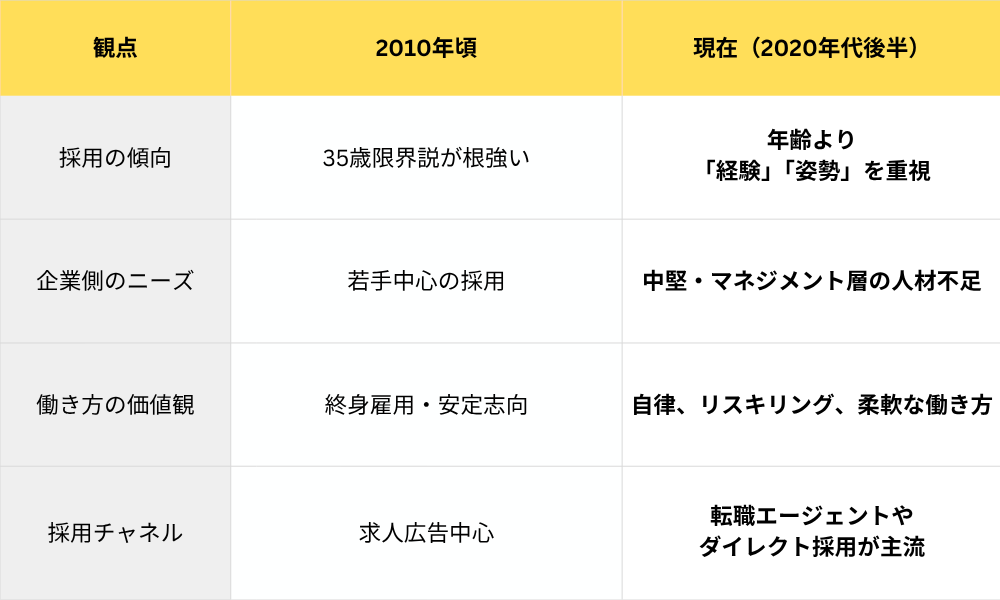 かつての転職市場では、35歳を過ぎると「転職限界説」がささやかれていました。